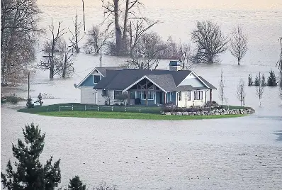 A house is surrounded by floodwaters on a farm in Abbotsford, B.C., on Tuesday. Rains have flooded much of southern B.C., leaving thousands disconnected and struggling with what to do next.