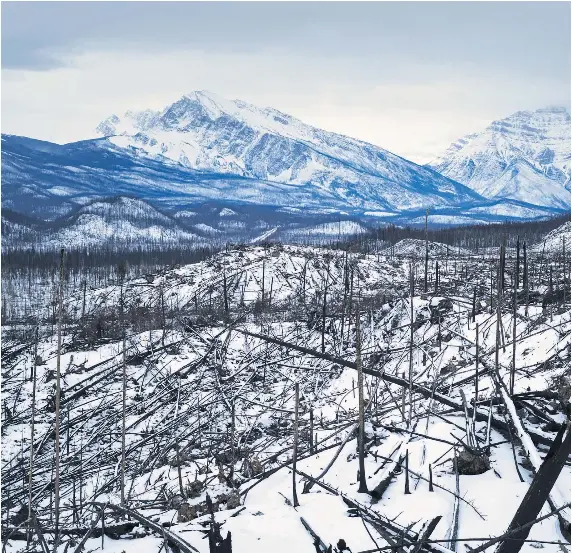 Six months later, Mr. Shepherd stood atop a pile of concrete construction slabs, surveying that same land at the base of Mount Edith Cavell. It was a grand mountain vista, as awe-inspiring as it had ever been, though in a different way. Now, broad swaths of blackened tree trunks dashed the landscape, like burned pickup sticks tossed to the ground.