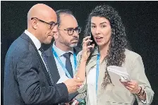 Joanna MacGregor, senior advisor for UN climate change, talks with Simon Stiell, UN climate chief, left, at Sunday’s COP29 summit.