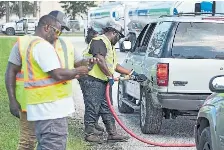 Fuel distribution workers fill cars at a depot in Plant City, Fla., on Saturday. Gov. Ron DeSantis said the state has opened three fuel distribution sites and planned to open several more.