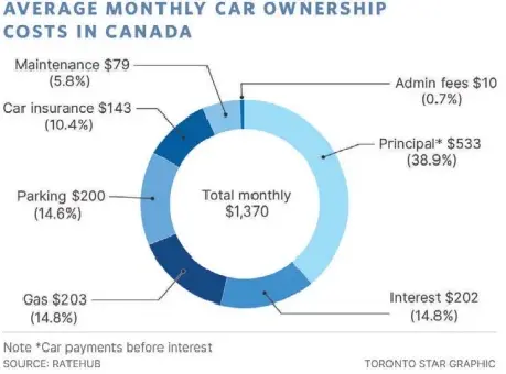 On the math side, it’s important to do a costbenefit calculation, Sellery says. Gather facts around your car expenses, including the car payment, insurance, maintenance, parking and gas. Ratehub’s report found that Canadians spend an average of $203 per month on gas, $200 on parking, $143 on car insurance and $79 on vehicle maintenance, while around $202 per month goes toward interest on car payments.