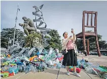 A women takes a selfie with The Thinker’s Burden, by Canadian artist, activist and photographer Benjamin Von Wong, in front of the UN office in Geneva on Monday. The remix of Rodin’s iconic sculpture was created for global plastics talks.
